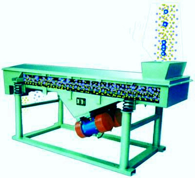 該機利用振動電機激振作為振動源,使物料在篩網(wǎng)上被拋起,同時向前作直線運動,物料從給料機均勻地進入篩分機的進料口,通過多層篩網(wǎng)產(chǎn)生數(shù)種規(guī)格的篩上物、篩下物、分別從各自的出口排出。
