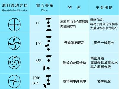 三次元旋振篩由直立式電機(jī)作激振源,電機(jī)上、下兩端安裝有偏心重錘,將電機(jī)的旋轉(zhuǎn)運(yùn)動轉(zhuǎn)變?yōu)樗?、垂直、傾斜的三次元運(yùn)動,再把這個(gè)運(yùn)動傳遞給篩面。調(diào)節(jié)上、下兩端的相位角,可以改變物料在篩面上的運(yùn)動軌跡。